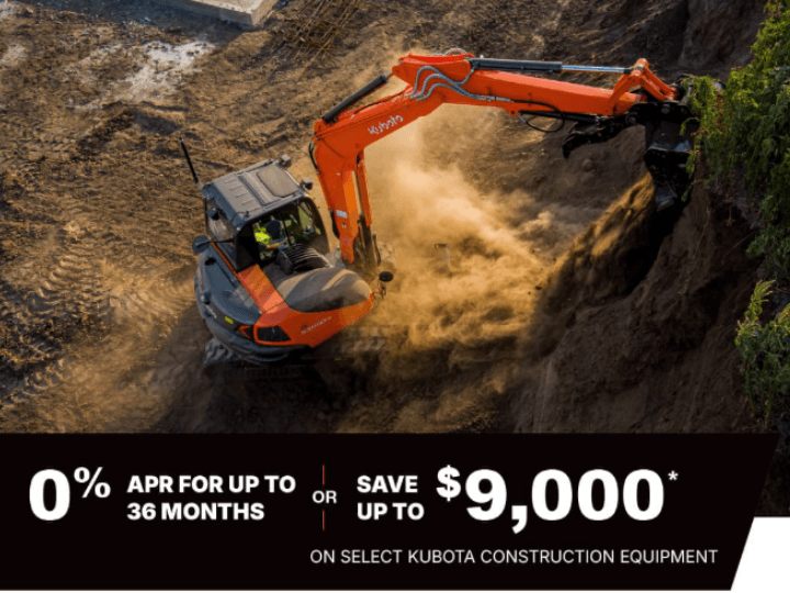 $0 Down, 0% A.P.R. for up to 36 Months or Save up to $9,000 on Construction Equipment!