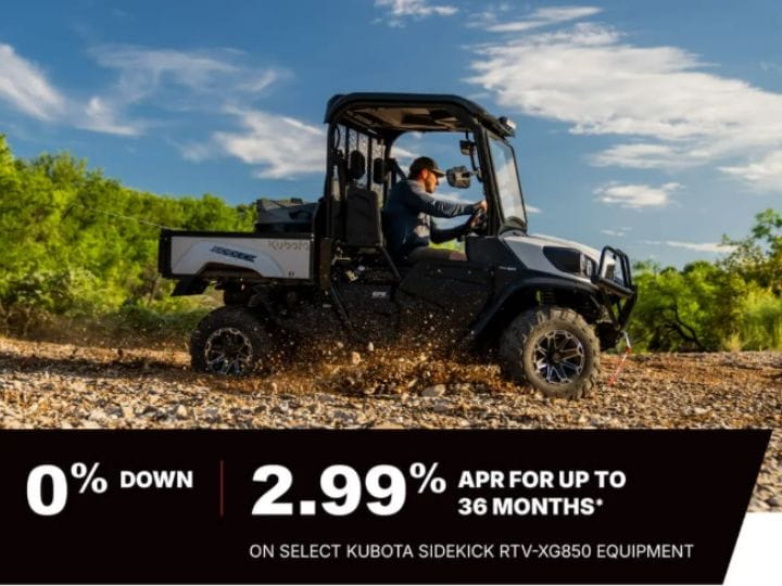 0% Down, 2.99% APR for 36 Months on SIDEKICK RTV-XG850!